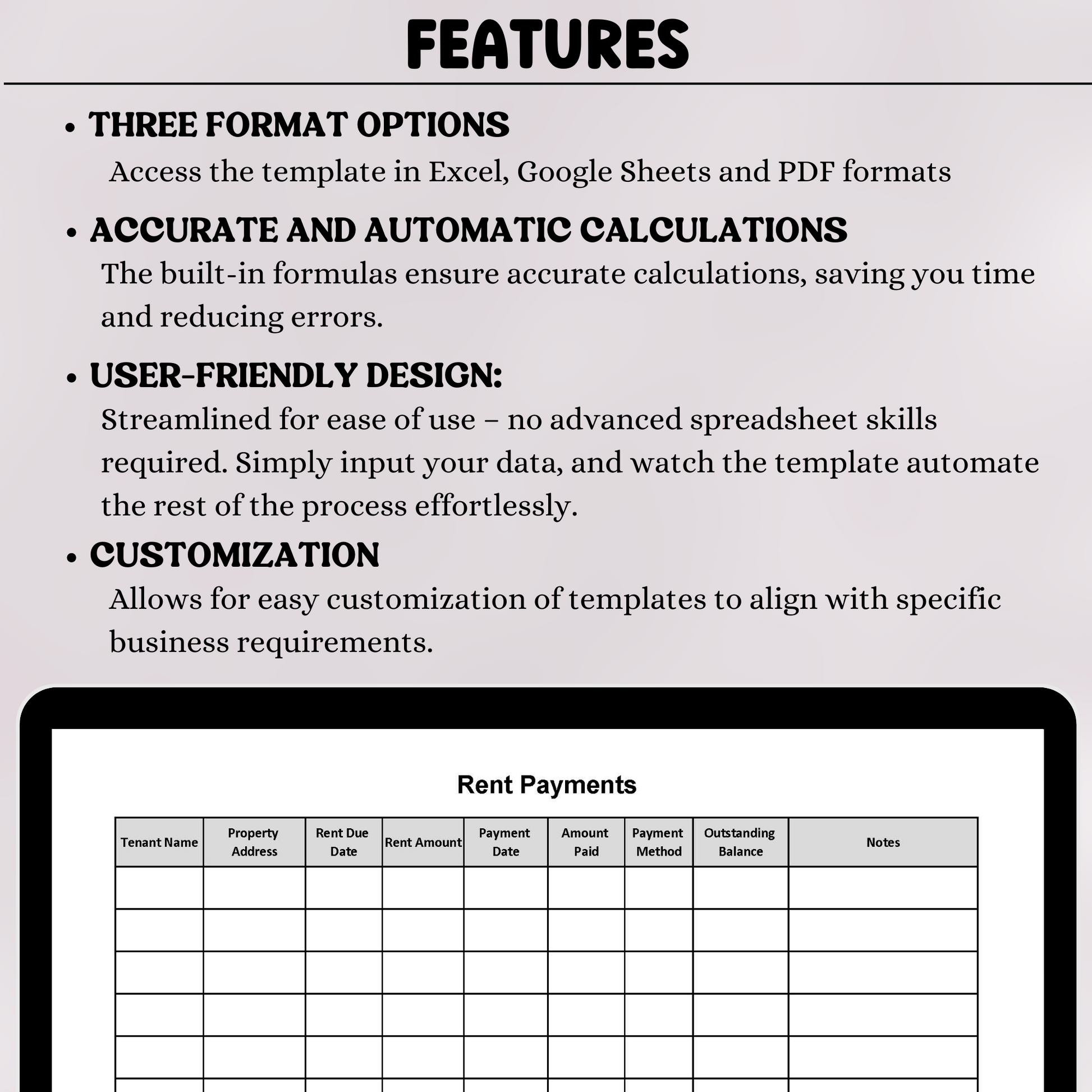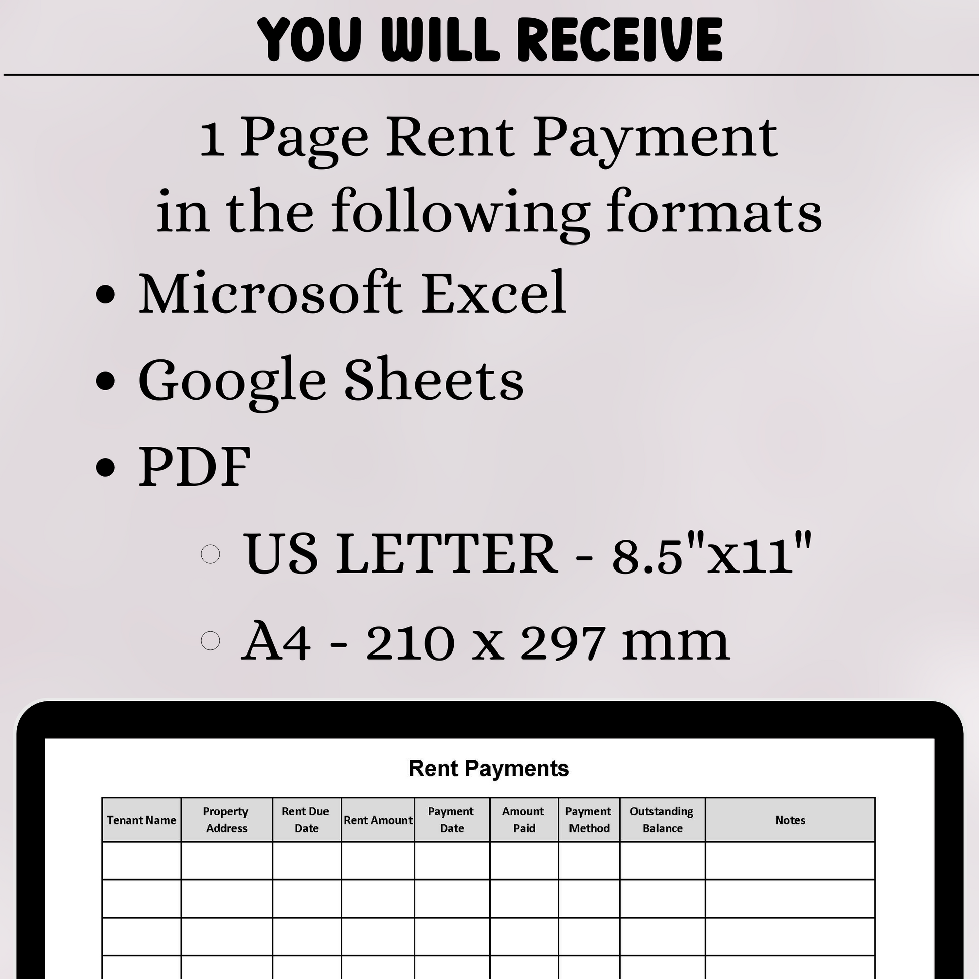 Looking for an easy way to record your rent payments? Check out this rental payment ledger, available in Excel, Google Sheets, and PDF formats.
